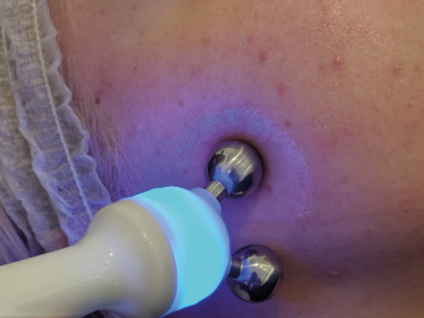 Electro-ion technology supports skin lifting by using electroporation, which improves the cells' ability to absorb products more effectively. This process temporarily creates openings in the outer layers of the skin, allowing for better absorption of the applied products. By utilising iontophoresis and anti-gravity techniques, the handpiece delivers brightening serums deeper into the subdermal layers of the skin, while also providing a slight muscle contraction and lifting effect.