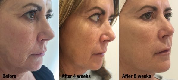 Ultra-pure hyaluronic acid is precisely injected into the area being treated. Then, unlike wrinkle reducing and dermal filler treatments, Profhilo® stimulates collagen and elastin, improving hydration in the deeper layers of the skin. The stimulation of 4 different types of collagen and elastin takes place by slow release of hyaluronic acid. Results include the improvement of the skin’s texture, firmness and radiance in addition to reducing the appearance of fine lines and wrinkles.
